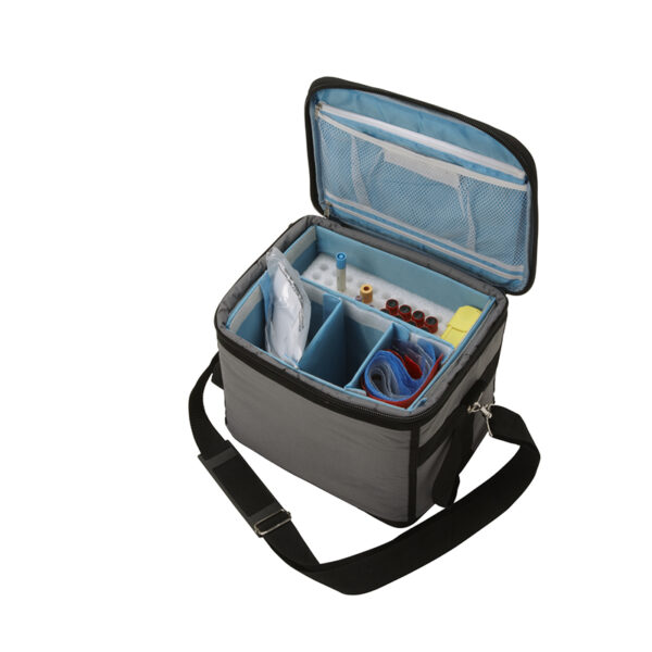 * Exterior made from waterproof ,easy-clean 1680 polyester with thickness PE foam insulation.It can keep the biological substances cool up to 6 hours,perfect for collecting samples of biological substances taken during home visits;