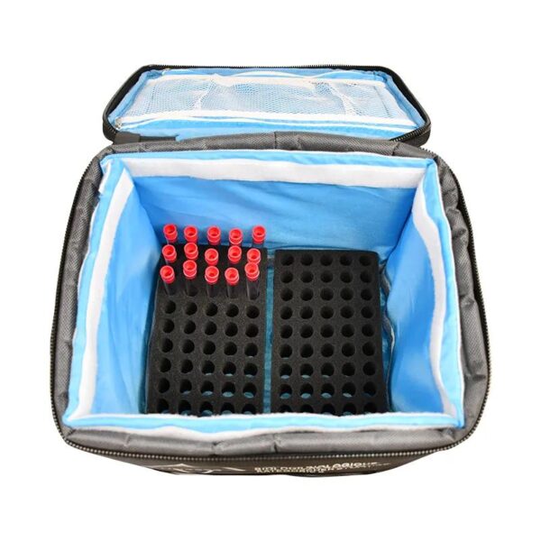 * Exterior made from waterproof ,easy-clean 1680 polyester with thickness PE foam insulation.It can keep the biological substances cool up to 6 hours,perfect for collecting samples of biological substances taken during home visits;