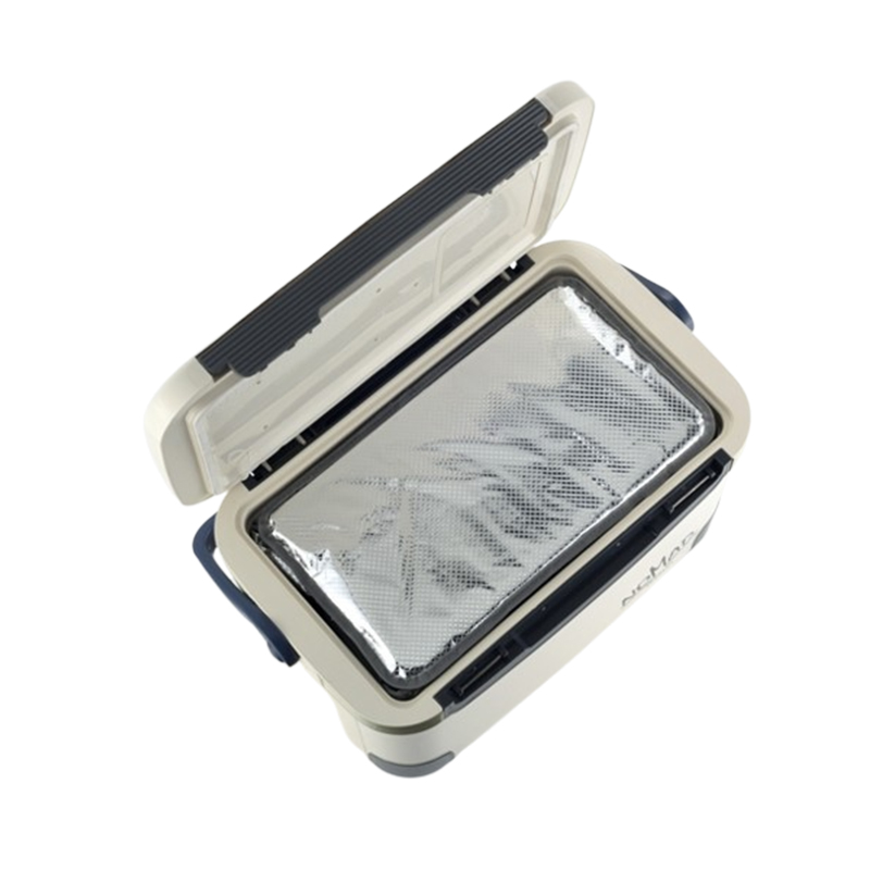 2.2. Place frozen ice bricks inside the foil pockets in the cooler box directly or insert into the pocket of aluminum foil liner.