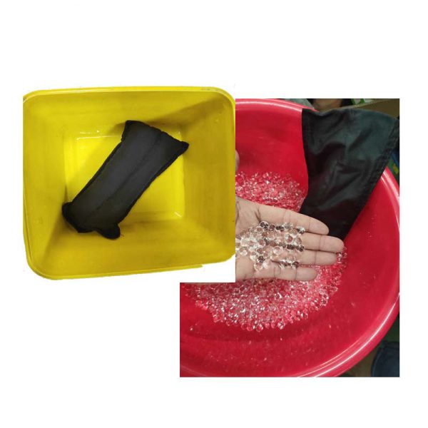 2.1. Immerse the inner pouch containing the crystals into cold water and soak for 10-15 minutes,Manipulate the wallet to spread the crystals evently throughout the panels.